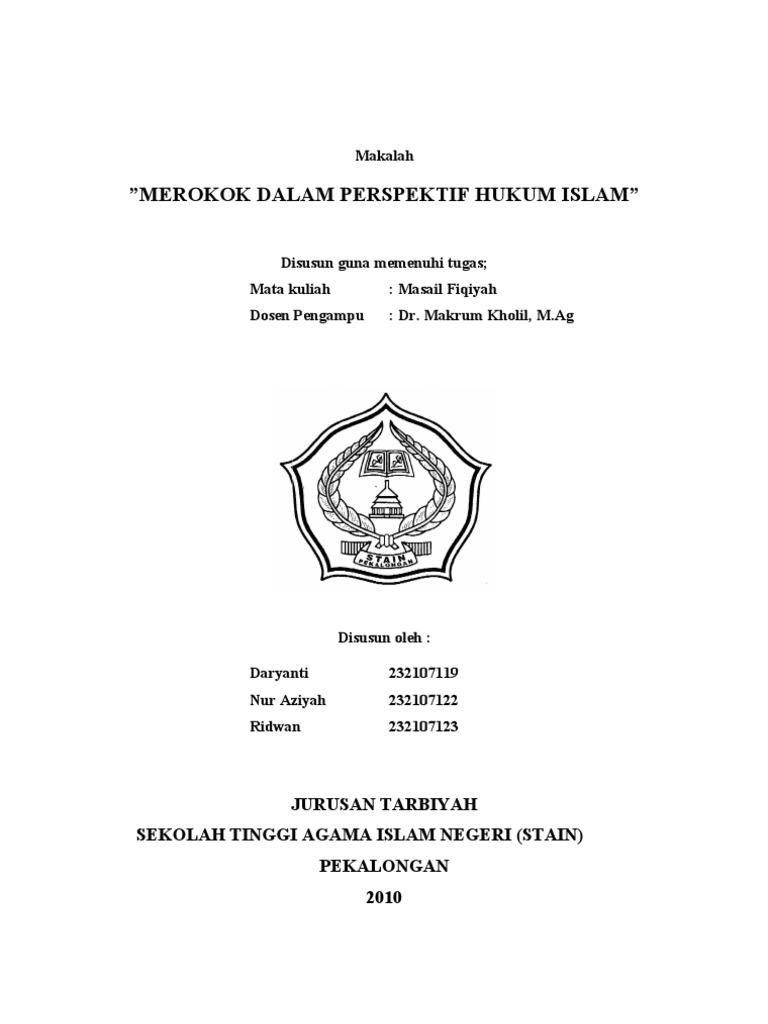 Inilah sumber utama hukum islam. Sebuah kajian makalah yang dipresentasikan dalam kuliah studi hukum islam. Dalam hal ini, perokok pasif tidak dapat mengelak dari menghirup asap rokok, atau. Apalagi setelah isu beredarnya fatwa terkait merokok yang diharamkan oleh sebuah lembaga tinggi agama islam. Dalam islam tentunya hal ini menjadi pembahasan yang cukup serius. Saya sendiri orang yang percaya bahwa merokok hukumnya makruh. Nikotin menyebabkan jantung bekerja lebih berat dan membutuhkan lebih banyak oksigen, tetapi karbon monoksida. Bagi sebagian ulama mengatakan hukum merokok adalah haram,namun banyak juga yang mengatakan makruh. Hukum merokok dalam islam selalu mengundang pro dan kontra. Bahkan menurutnya, jika seorang istri memiliki suami yang perokok berat boleh meminta cerai apabila merasa terganggu. Hal ini ditegaskan dalam hadist nabi saw, aku telah tinggalkan pada kamu dua perkara. Analisis hukum merokok dalam islam. Hukum merokok ada beberapa pendapat di kalangan ulama' :