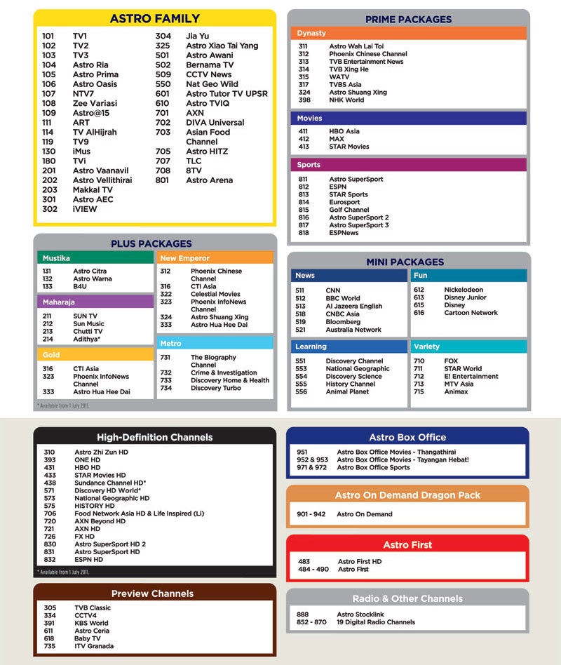 Astro Mini Package Channel List - Zafrina from astrobyondinfo.weebly.com 06.10.2019 · astro and broadband package / astro. *price shown is subject to 6% service tax. 1 astro channels with numbers: Standard pack (rm159/mth) standard sports pack (rm359/mth) permium pack (rm599/mth) elite pack (rm1,159/mth). All you need to know about astro bid and price benders at triple clicks. The package deal, carrying both of the above titles, is rvn4184. Discover a whole new world of entertainment right in your own home with astro. 35 per month (post without hd) * there are 40 tv shows * installation fee rm60 * free hd decoder, wire and plate * ready to install, keep active * 24 month subscription contract www.wasap.my/601127057094/familypack.