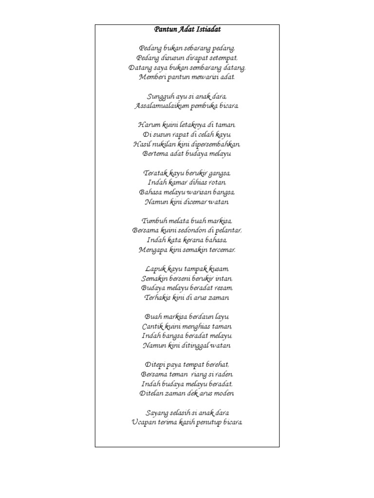 Contoh ucapan terima kasih kepada frontliner. Terima kasih ucapan tuan kekal bersemi dalam ingatan tuah tersenyum pada si teja, duduk bersimpuh sambil bersila, kain ditenun bersama reja, ydp pibg hormat dipersila, pantun persembahan pakaian dipakai cantik berseri, majlis keraian kita semua, majlis kita takkan berseri, tanpa persembahan multimedia dari kedah ke kuala perlis Sudah semestinya kita memiliki hubungan dengan orang lain sebagai manusia. Kawan, terima kasih atas segala kepedulianmu padaku selama ini dan terima kasih karena kamu selalu. Banyak pantun ucapan terima kasih, yang bisa kamu berikan sebagai bentuk apresiasi kepada orang lain atas kebaikan yang diberikan kepadamu. Meski susunan katanya terbilang singkat dan sederhana, pantun ucapan terima kasih ini juga memiliki makna mendalam. Tumbuh merimbun di hujung laman. 50 pantun ucapan selamat pagi, bikin semangat memulai aktivitas. Di kesempatan ini, saya juga ingin merakamkan Sikap untuk selalu berterima kasih kepada orang lain yang sudah membantu kita inilah salah satu hal yang harus dilatih. Contoh pantun ucapan terima kasih. Viral pernikahan kakek & nenek usia 60 tahun, ini 6 potret romantisnya brilio.net. Kita sebagai manusia pasti tidak lepas yang namanya bantuan dari orang lain.